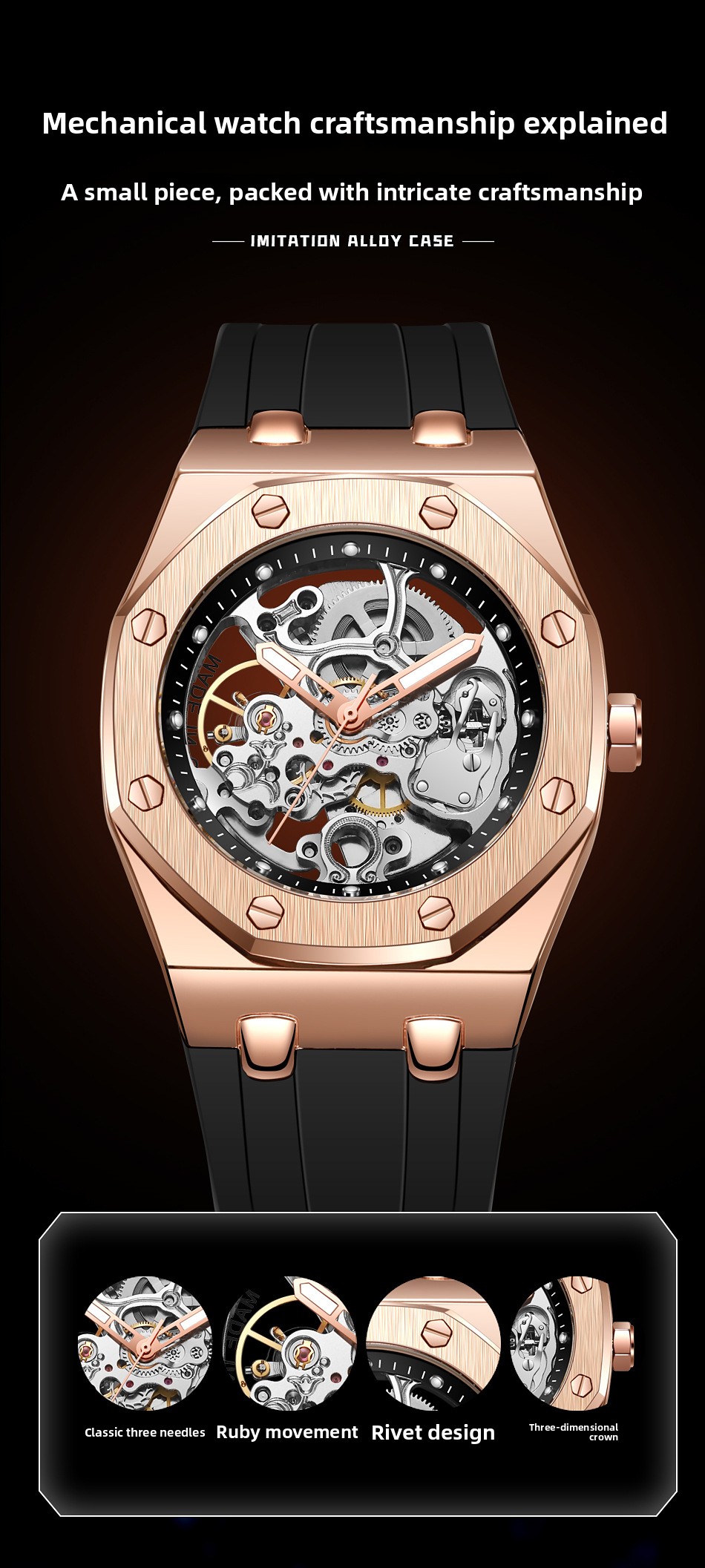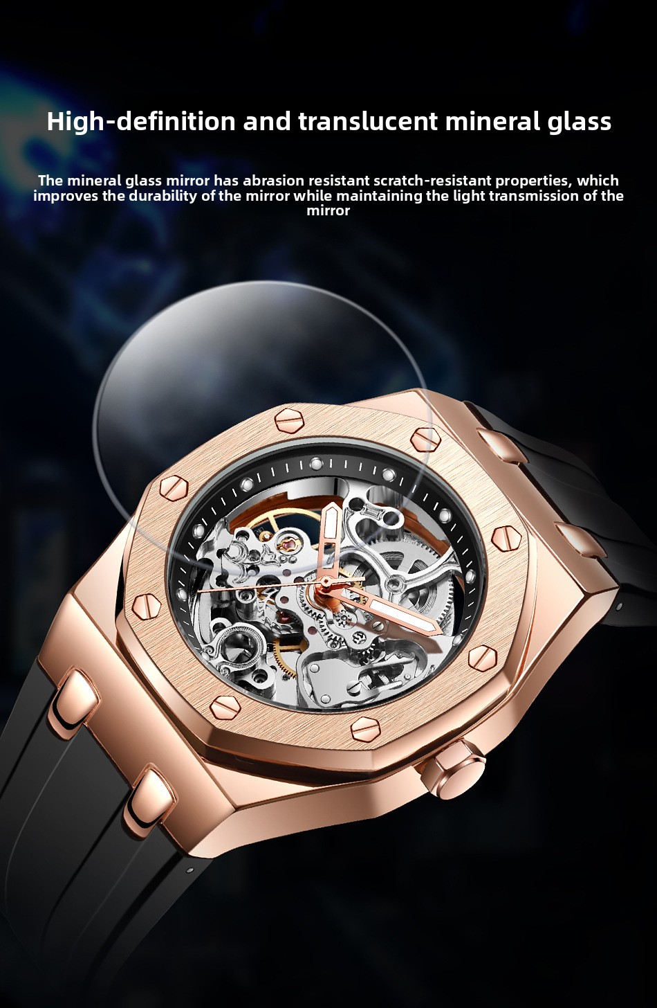 Stay on time in style with this self-winding octagonal mechanical watch. Featuring a luminous display, durable silicone strap, and modern business design, it’s perfect for daily wear and professional settings.