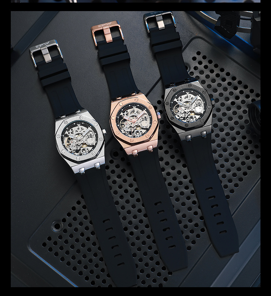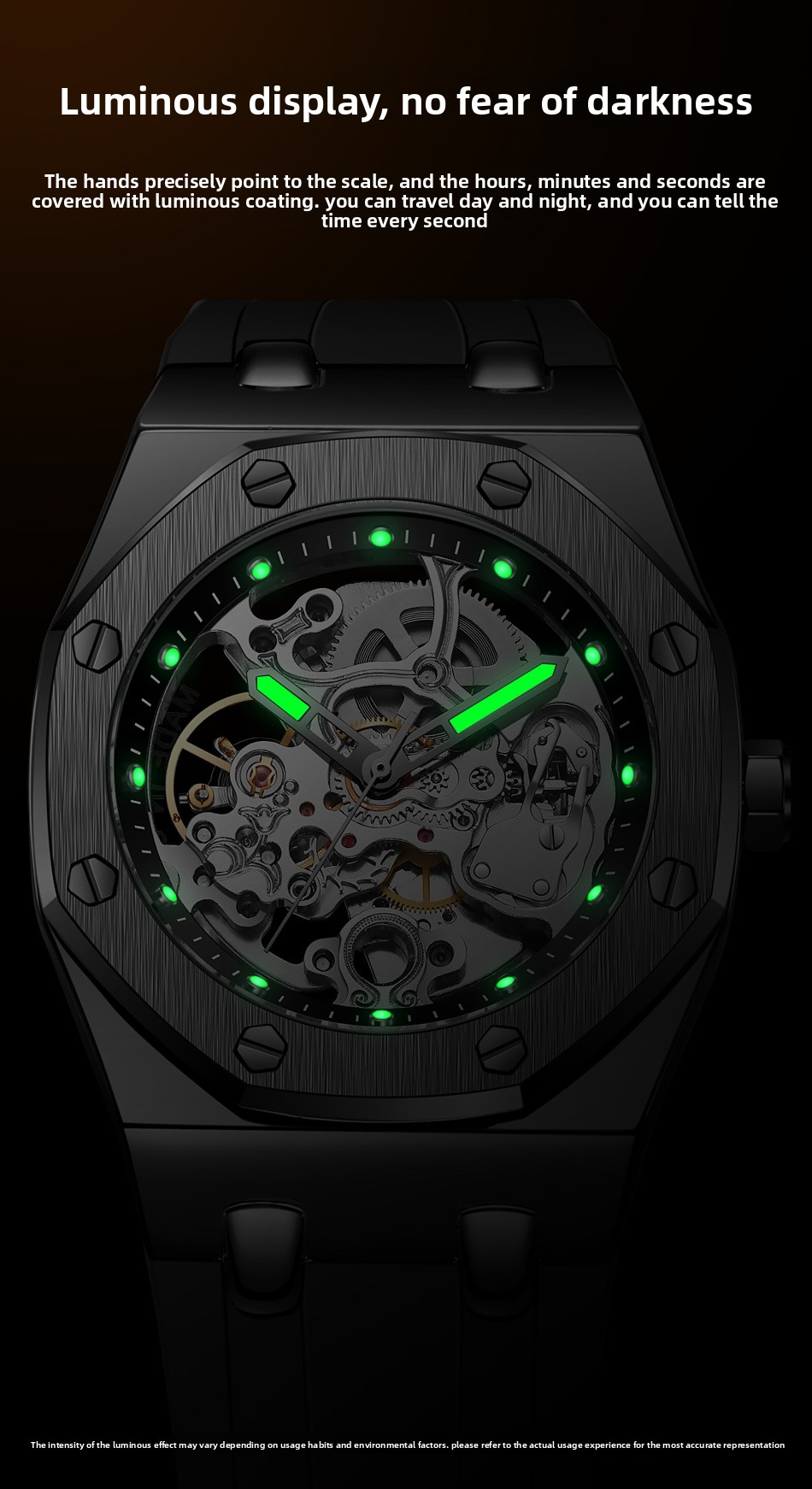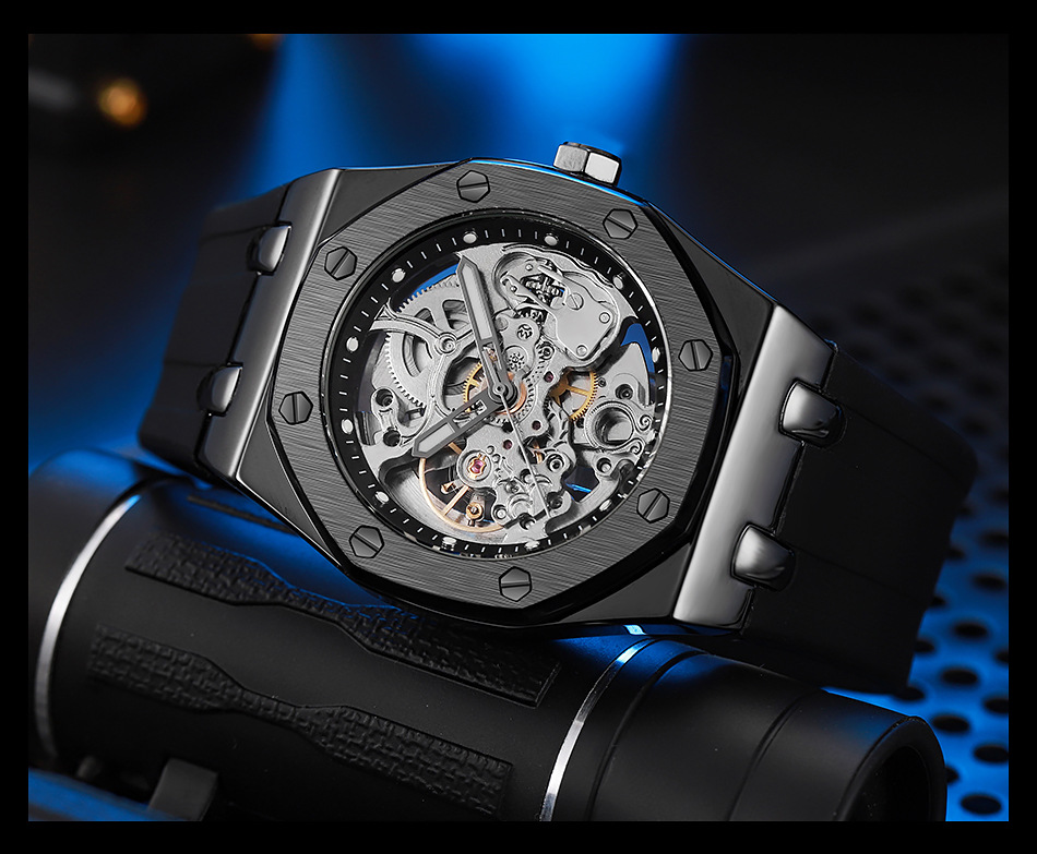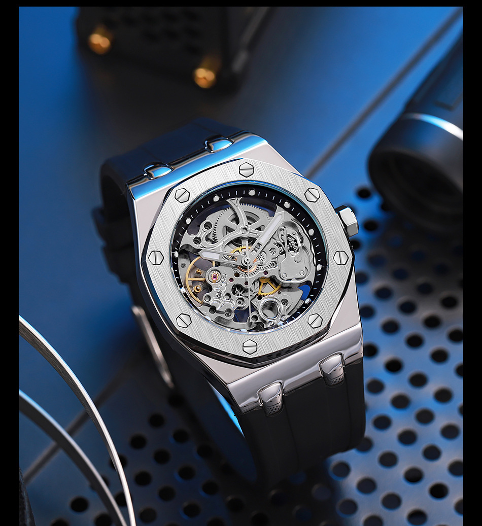 Automatic Octagonal Mechanical Watch – Luminous Silicone Strap