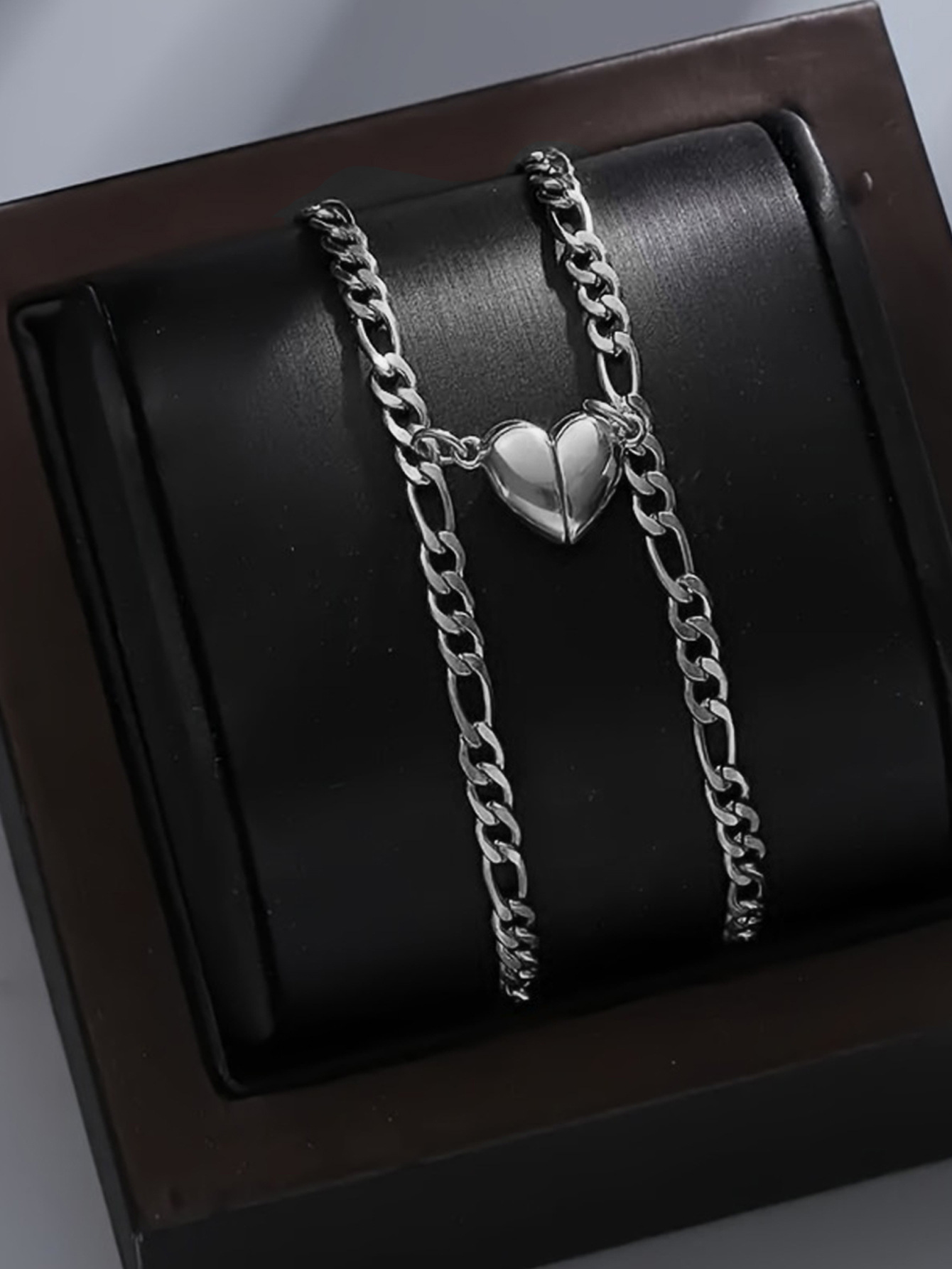 Add a touch of romance and modern style with this elegant paper clip-inspired bracelet. Featuring a heart-shaped accent and secure magnetic closure, it’s perfect for everyday wear or as a couple’s gift.
