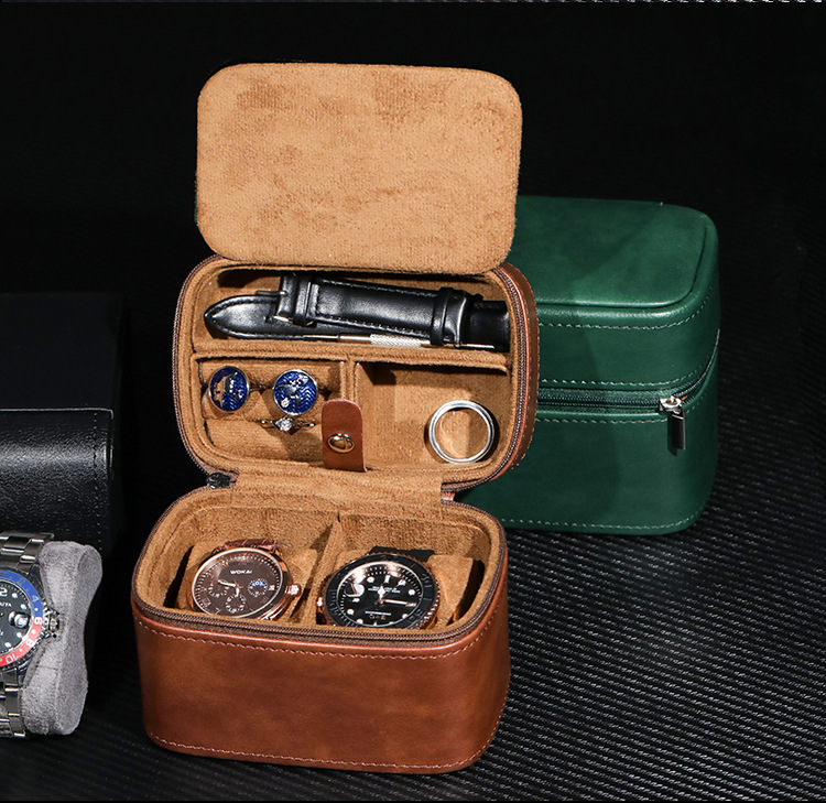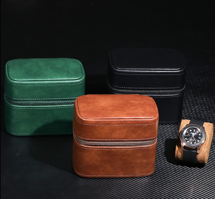 Protect and organize your watches and jewelry in style. This compact lychee-pattern leather case combines elegance with durability, perfect for travel or everyday storage.
