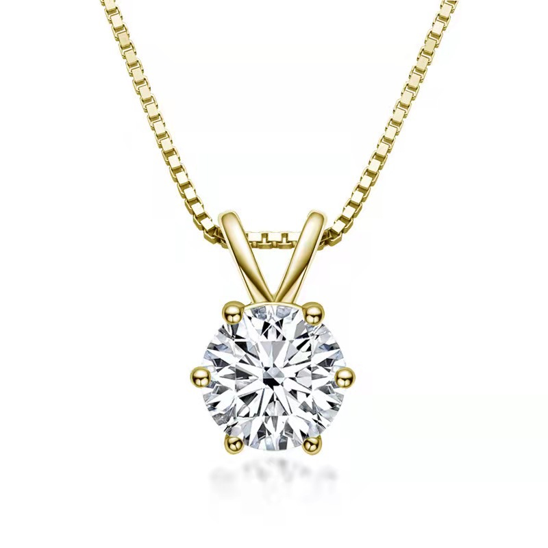 Add a touch of brilliance to any outfit with this high-quality moissanite pendant necklace. Featuring a secure six-claw setting and minimalist geometric design, it’s perfect as a standalone piece or layered with your favorite jewelry.