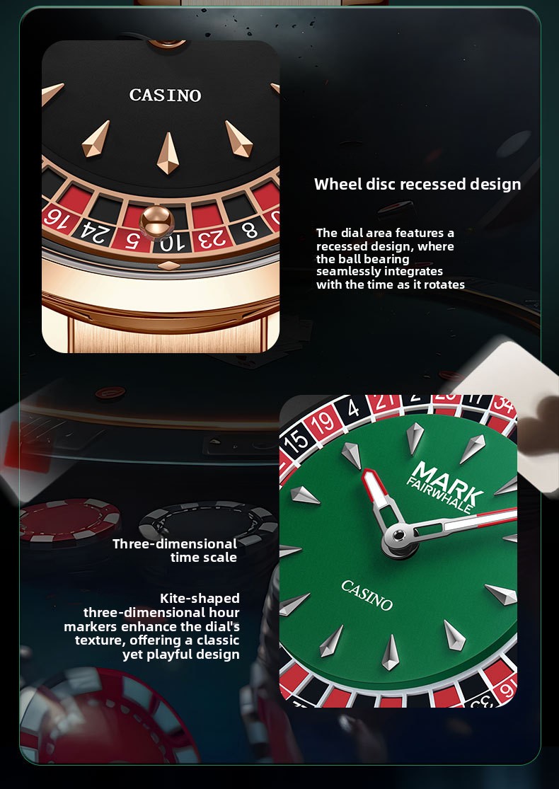 Luminous Compass Quartz Casino Style Watch – 46mm